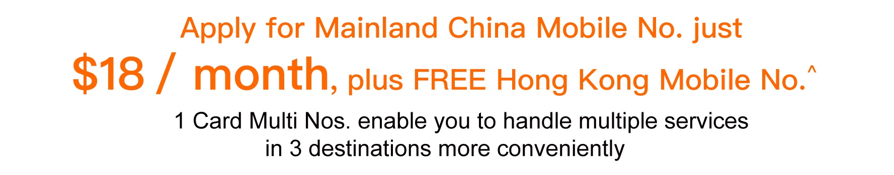 ^ This offer is only applicable to new subscribers to the Mainland China / Hong Kong Mobile No., for the first 12 months, customers can enjoy a special monthly rental of $18, the valid period for FREE Hong Kong / Mainland China Mobile No. is the first 12 months. After the offer period, the monthly rental will resume to original price of $28 each, if customers agree to continue to use the service.