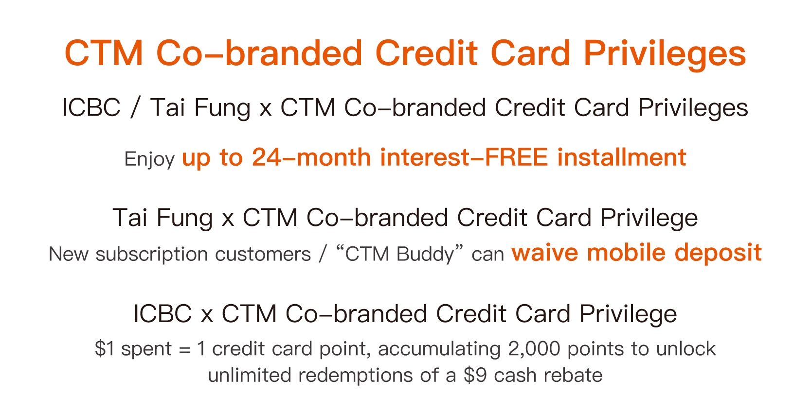 ⬥ Only applicable to ICBC / Tai Fung x CTM Co-branded Credit Card.