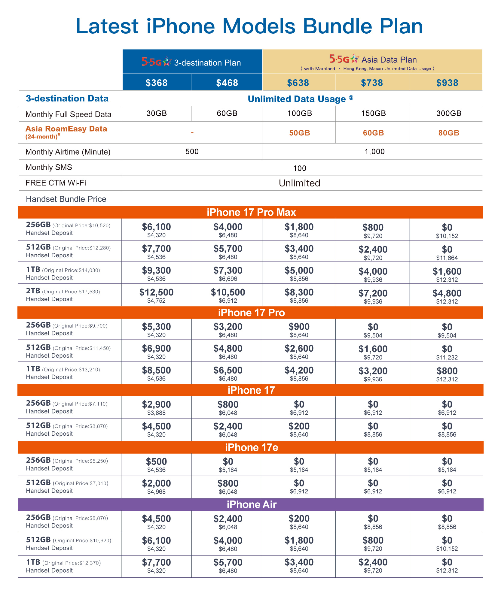 - All prices are in MOP. Customers of the above promotions are bound by the respective service agreement. This offer cannot be used in conjunction with any other promotional offers. This offer price is subject to change without prior notice. All products and gifts are only available while stock lasts. The above services are based on CTM Acceptable Use Policy " AUP ".