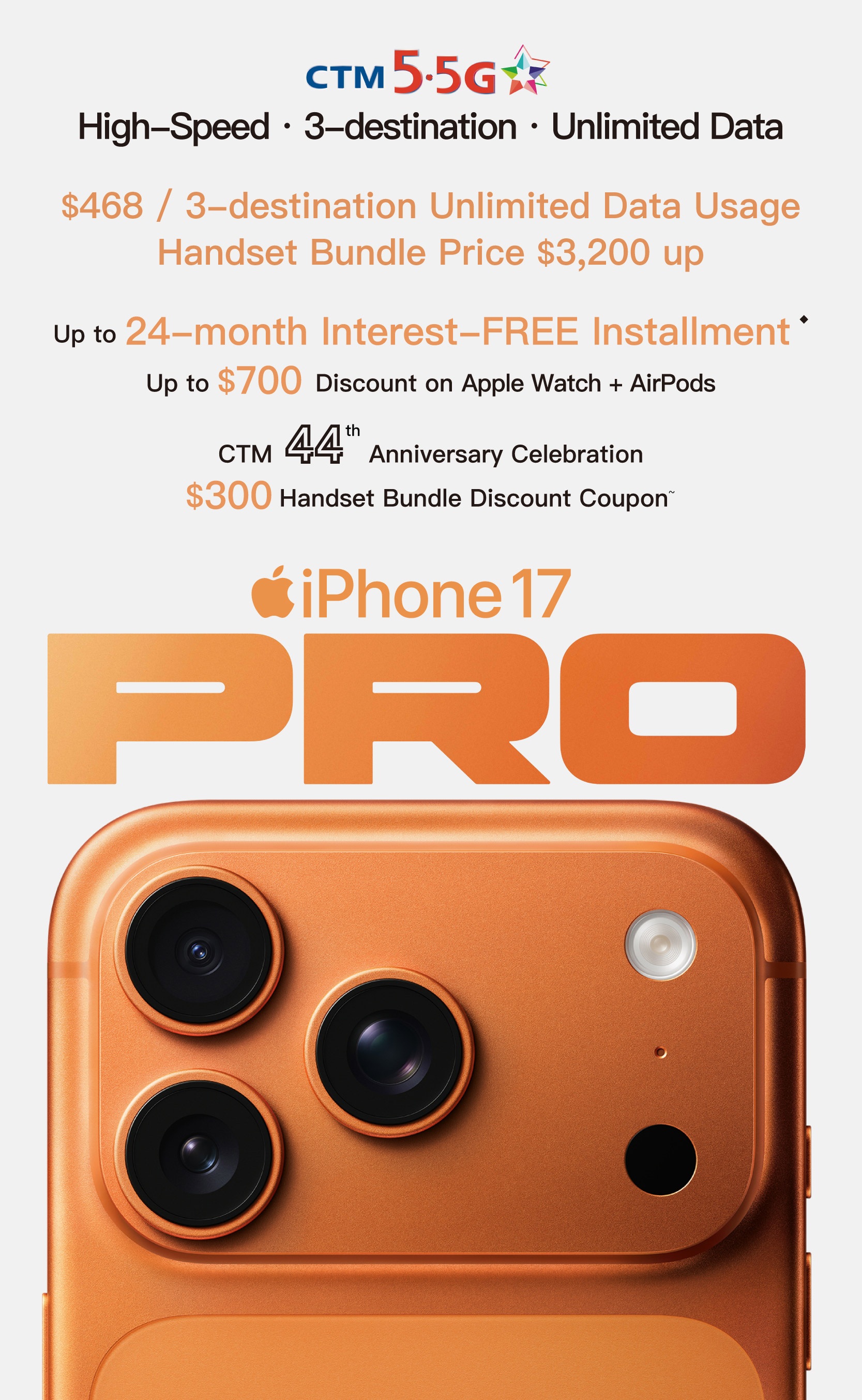 - All prices are in MOP. Customers of the above promotions are bound by the respective service agreement. This offer cannot be used in conjunction with any other promotional offers. This offer price is subject to change without prior notice. All products and gifts are only available while stock lasts. The above services are based on CTM Acceptable Use Policy " AUP ".