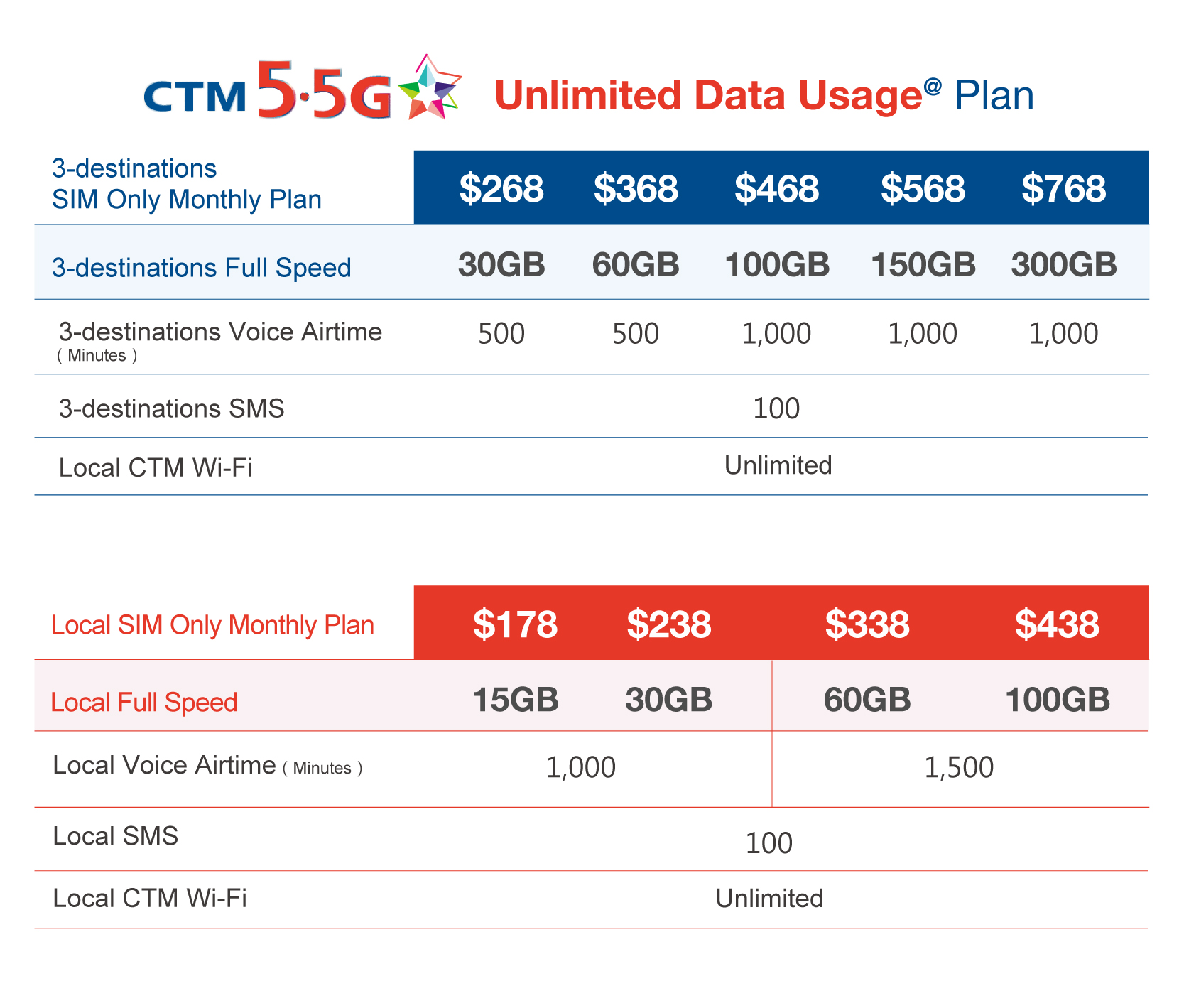 * This offer is only applicable to new subscribers applying for the Mainland China / Hong Kong Mobile No. , customers can enjoy a special monthly rental of $18 for Mainland China Mobile No. for the first 12 months, and Hong Kong Mobile no. monthly rental is $28. After offer period, Mainland China Mobile No. will resume to its original monthly rental ($28) if customers agree to continue to use the service.