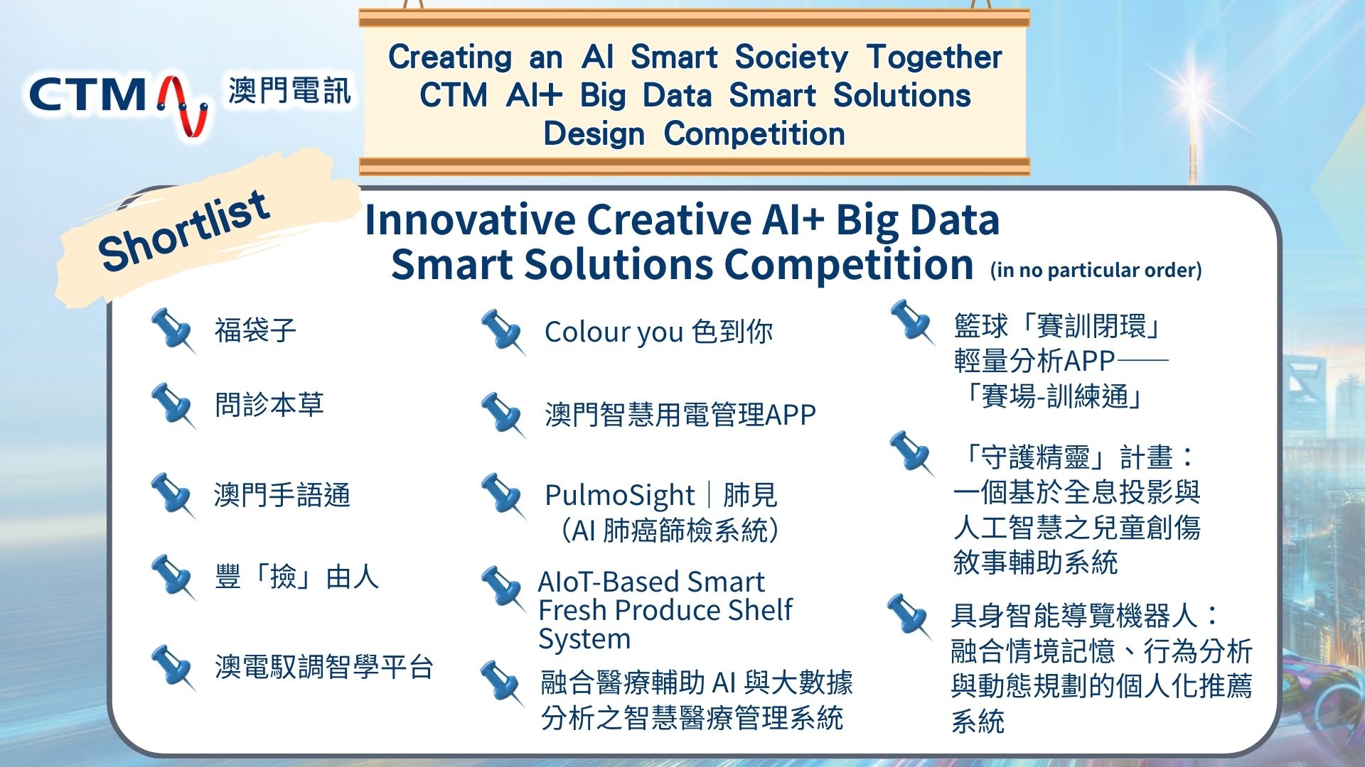 CTM would like to express its sincere gratitude its heartfelt gratitude to all participants for their invaluable support of the "CTM AI + Big Data Smart Application Design Competition".
