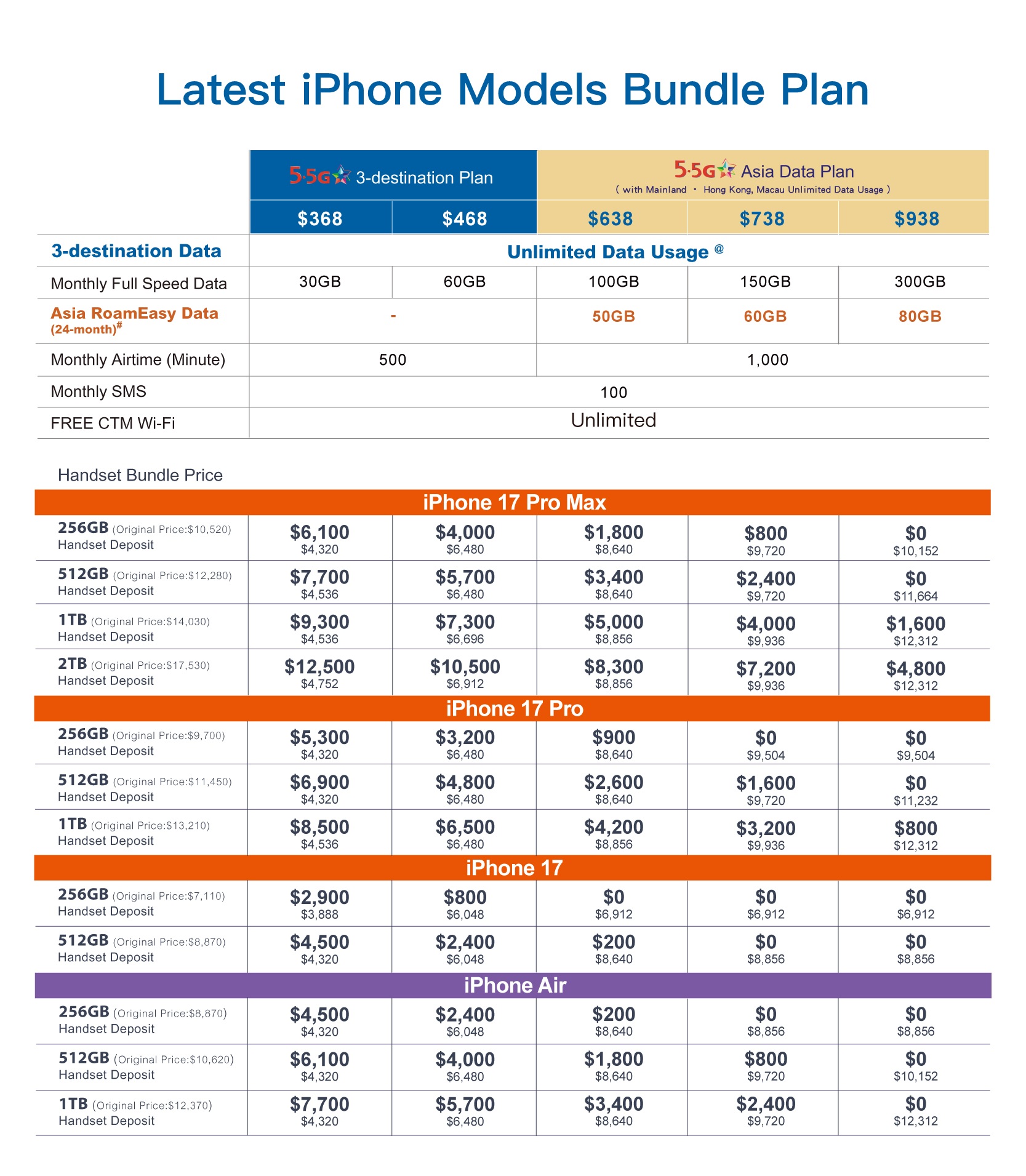 - All prices are in MOP. Customers of the above promotions are bound by the respective service agreement. This offer cannot be used in conjunction with any other promotional offers. This offer price is subject to change without prior notice. All products and gifts are only available while stock lasts. The above services are based on CTM Acceptable Use Policy " AUP ".