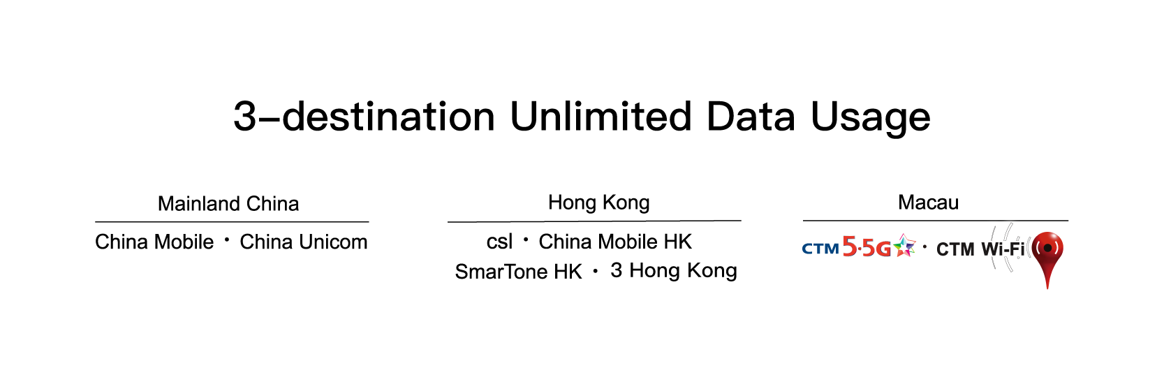 - The activation time of 3-destinations Plan is after 8pm the following day. Customers are required to select “China Mobile HK”, “CSL”, “SmarTone HK” or “3 Hong Kong” as mobile service operator when they are traveling in Hong Kong, as well as select "China Mobile" or "China Unicom" as mobile service operator when roaming in Mainland China.