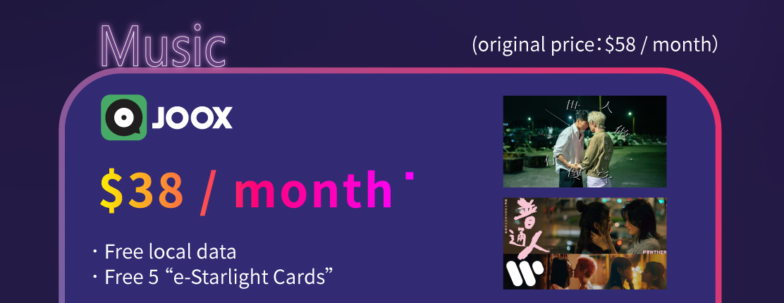 4. After the promotion period, if the customer continues to use the JOOX service and purchases the JOOX "Starlight Card + Membership Package" at the same time, the membership validity period will be extended based on the existing service due date.