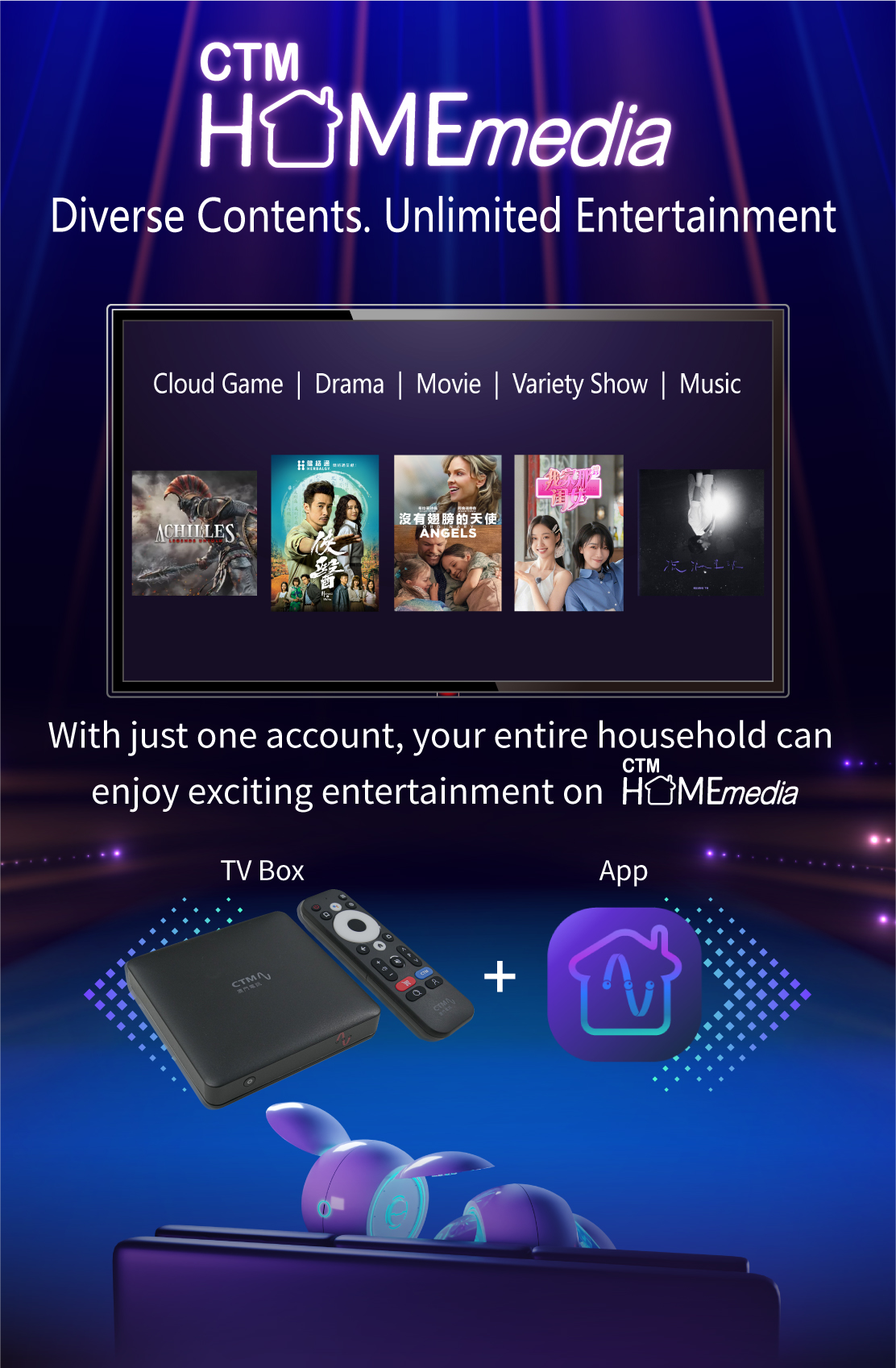 * This offer is only applicable to Mobile Plan Customers who subscribe 5.5G Monthly Plan and Home Media Entertainment Service - myTV SUPER Service (2 devices for App / Web) at the same time. The offer is valid until 31 / 12 / 2025, and the service will be automatically suspended after the promotion period. If customers want to continue using the service after the 12 months promotion period, customers can apply the service at a special price via CTM Buddy App (original price: $38 / month).