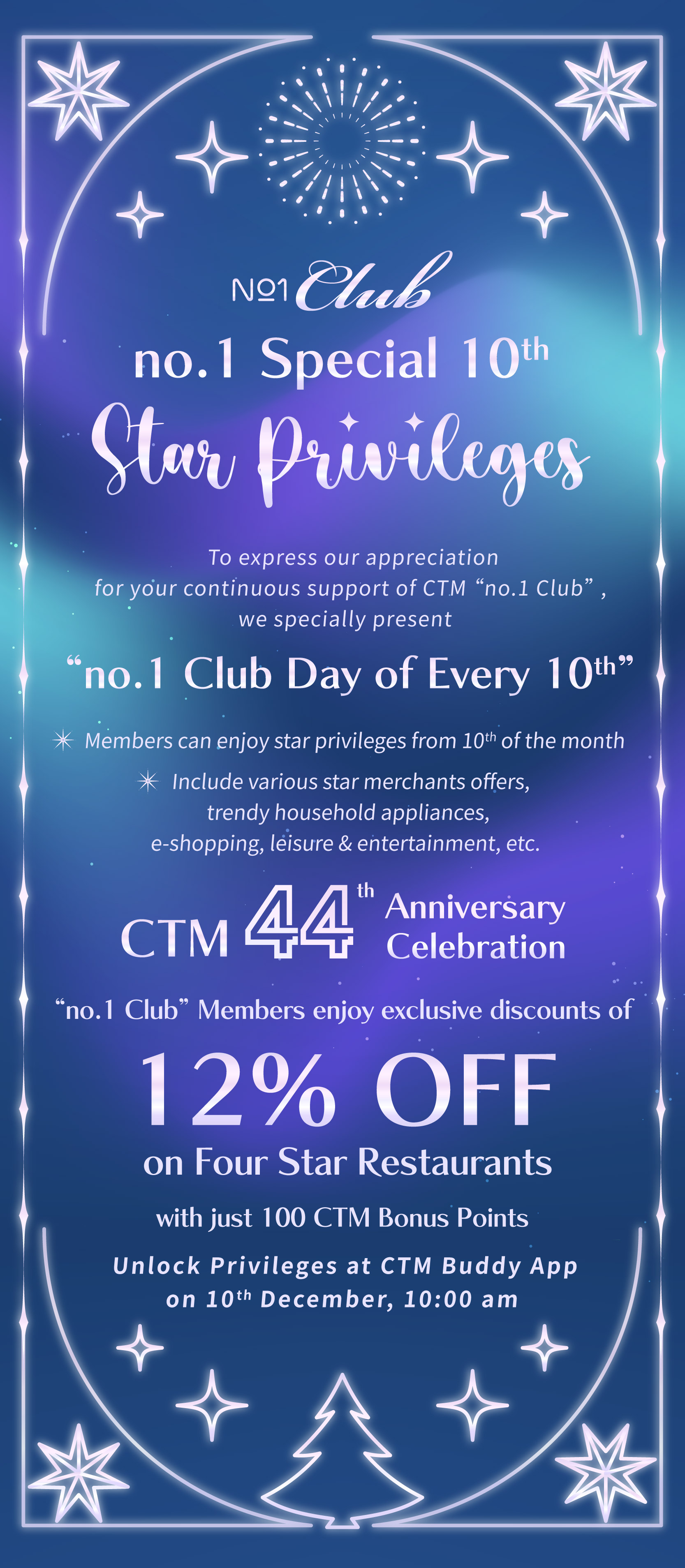 Notes: Offers are valid from 10 / 12 / 2025 – 31 / 1 / 2026. Offers are only applicable to "no.1 Club" Members and customers are bound by the respective service agreement. All products / gifts are available while stock lasts. Customers must redeem coupons in CTM Buddy App to enjoy exclusive prices.