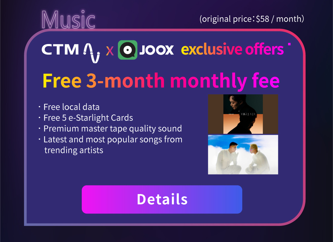 4. After the promotion period, if the customer continues to use the JOOX service and purchases the JOOX "Starlight Card + Membership Package" at the same time, the membership validity period will be extended based on the existing service due date.