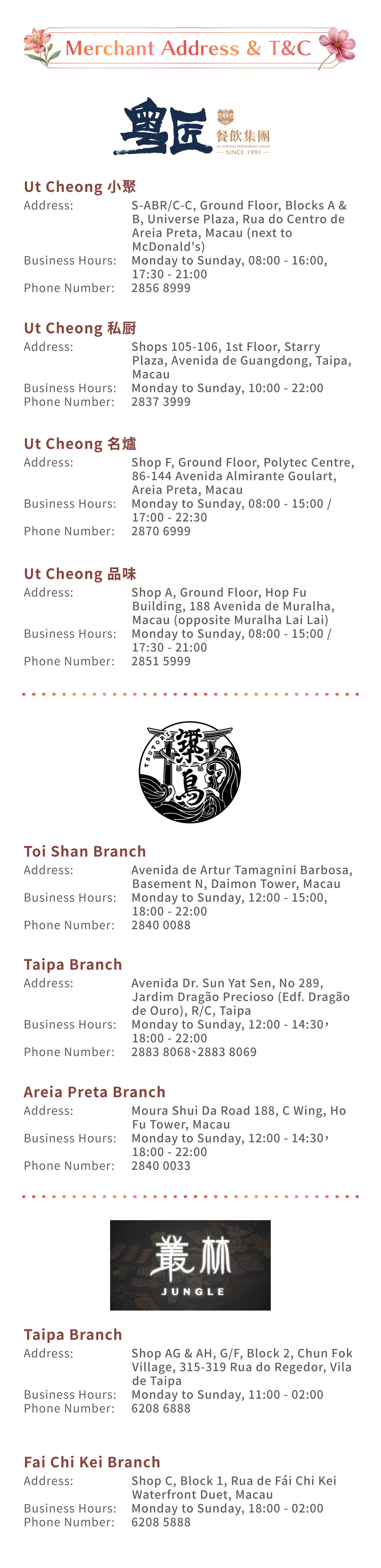 l Ut Cheong Meal valid for dine-in service in the main dining area during business hours, Monday through Sunday. One voucher per table. Not valid with other offers.