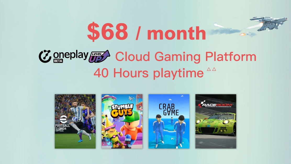 △△ OnePlay Cloud Gaming Service (Original Price: $80 / 30hours). To use the Cloud Gaming Service, customer must purchase the games from online game stores (Steam, Epic, Ubisoft, Blizzard, EA, Microsoft, and Fanatical) in advance. For the games available for Cloud Gaming Service, please refer to the game library in OnePlay Cloud Gaming Platform Service webpage (https://www.oneplay.in).