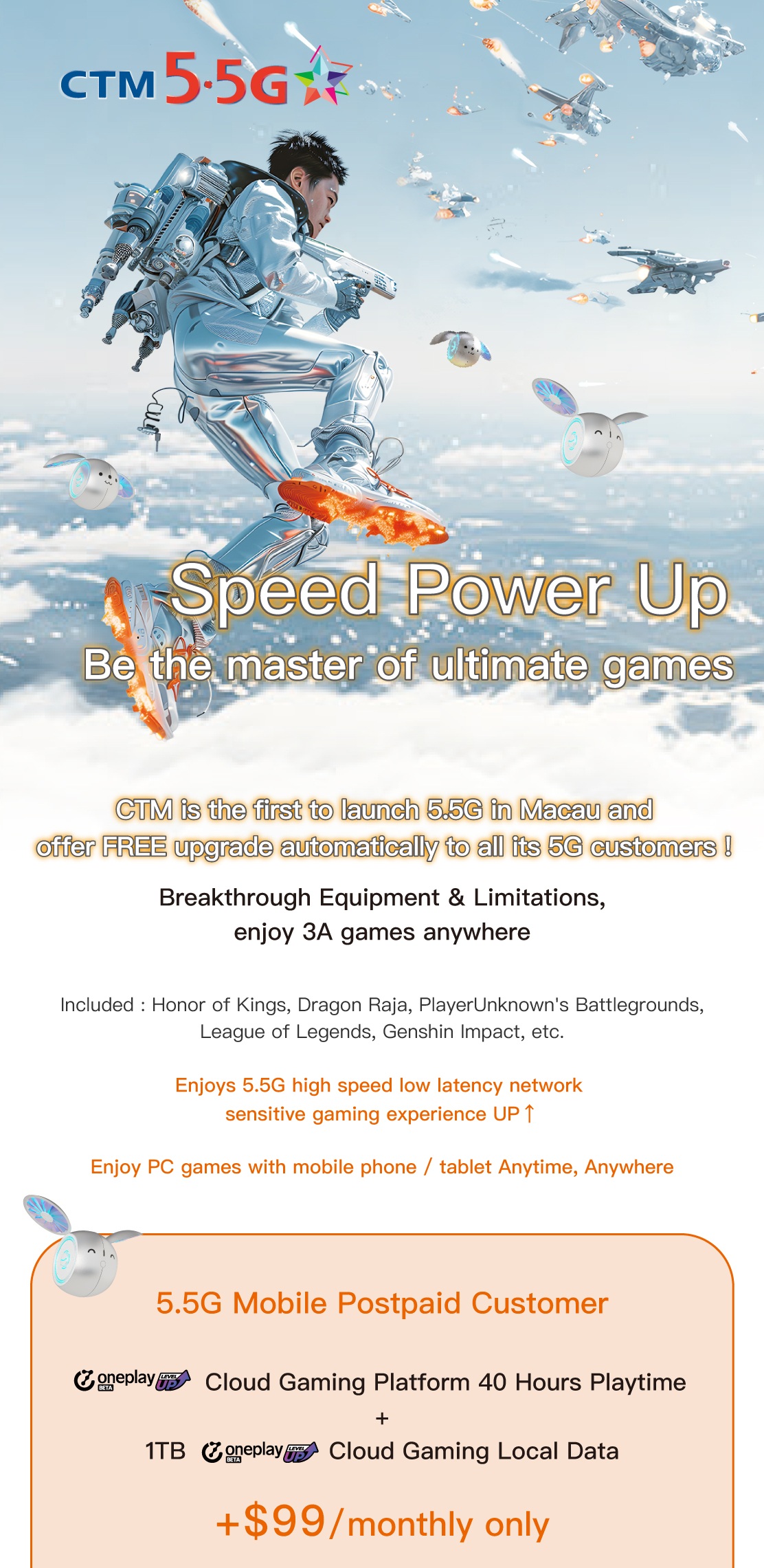 Note:This offer is valid until 31 / 10 / 2025. This offer is applicable for 5.5G mobile service / Fiber Broadband customers only. The offer is bound by the related terms and conditions. This offer price is subject to change without prior notice. All prices are in MOP.