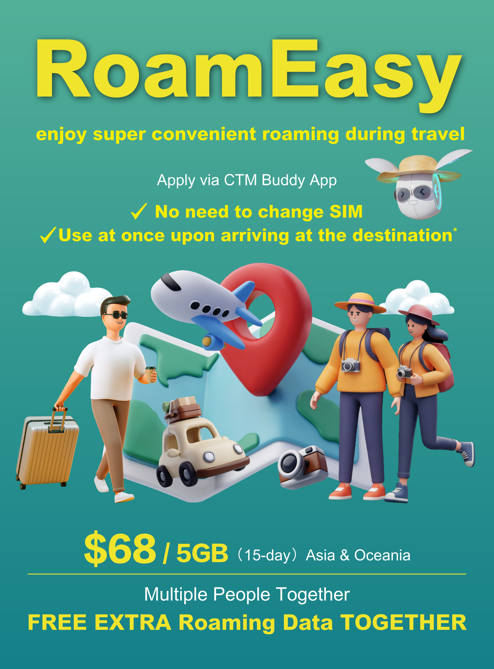 - The effective time of this “ RoamEasy (15-Day) ” starts from the successful application time to Macau time 23:59:59 of the 15th day. “ RoamEasy (1-Year) ” starts from the successful application time to Macau time 23:59:59 of the 365th day. When the service is ended, customers will receive a SMS alert, and the service will not extend automatically. Customer need to re-apply again if necessary.