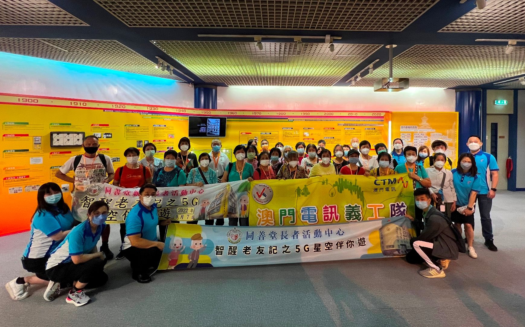 中秋節將至,澳門電訊義工隊與澳門同善堂合辦「智醒老友記之5G星空伴你遊」活動,邀請同善堂新橋和黑沙環長者中心老友記們參觀通訊博物館及位於高地烏街總店內的「CTM 5G星空」展廳,並送上應節食品及佳節祝福,共賀中秋。