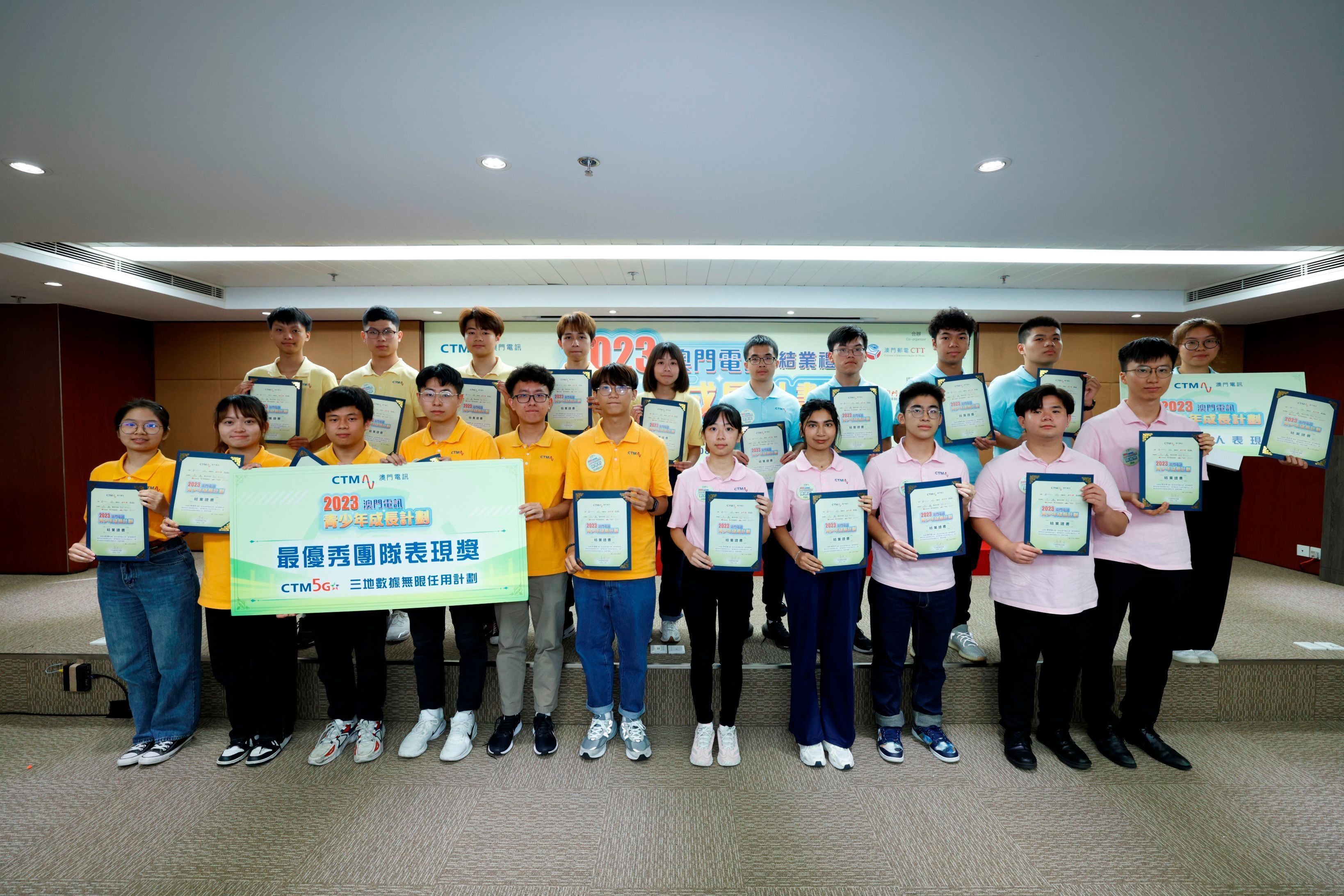 由澳門電訊主辦,郵電局及鮑思高青年服務網絡合辦,澳門廣播電視股份有限公司、澳門日報擔任媒體伙伴的「澳門電訊青少年成長計劃2023」,已於8月4日圓滿舉行。21位學員在為期一個多月的實習過程中,接受了一系列多元化及全方位的培訓,包括企業實習、社區關懷活動、參訪活動、新媒體直播體驗及大灣區考察等。澳門電訊希望透過活動提昇青少年的團隊精神、領導才能、社交能力和關愛精神等綜合體驗,讓青少年逐步達至多方位全面發展,協助青少年健康成長。