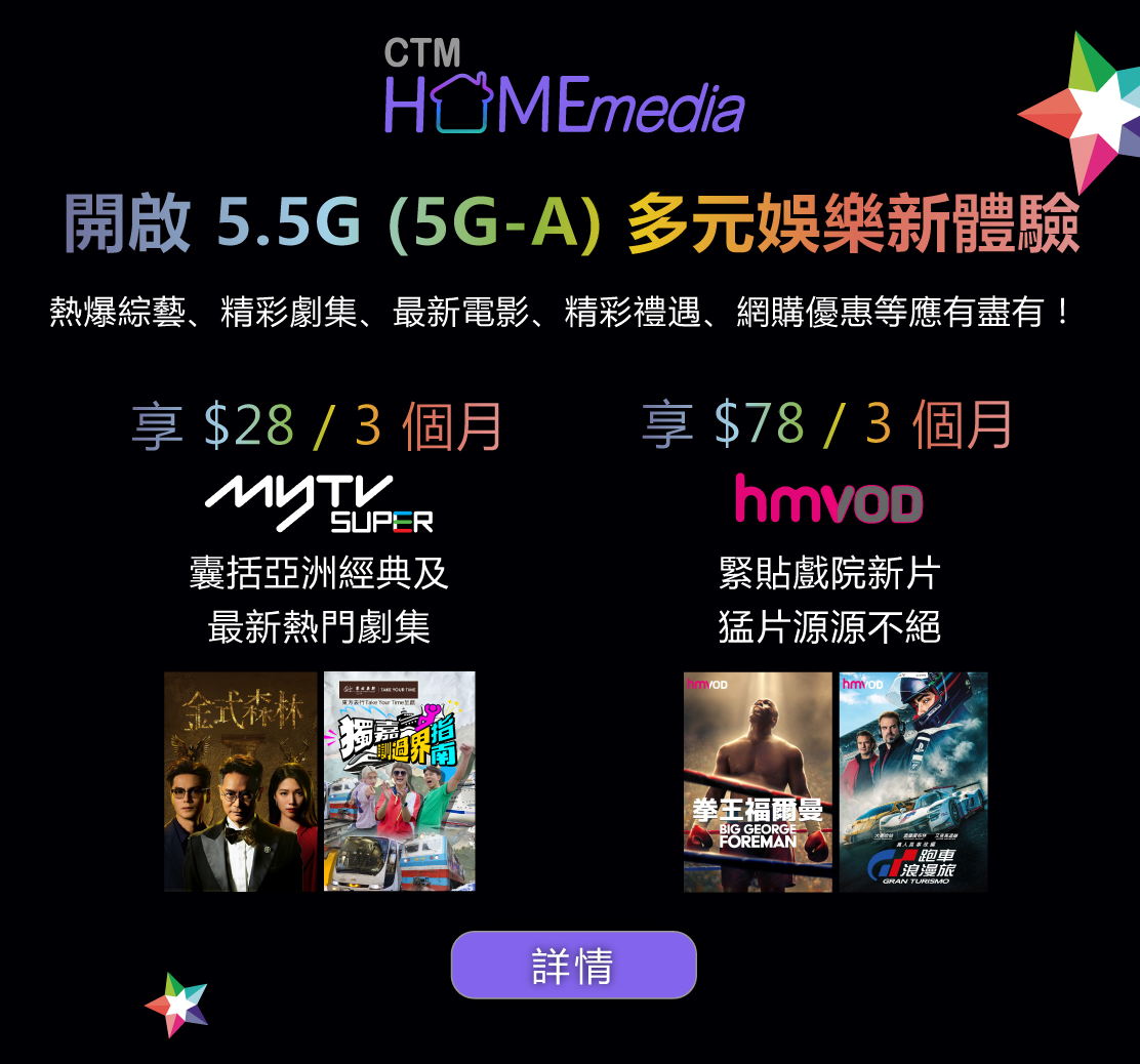 註: - 優惠期至 2025 年 11 月 30 日。 -「三地數據無限期計劃」可使用至預付卡有效期終止。 - 內地號碼服務優惠有效期至 2025 年 11 月 30 日,並只適用於新申請內地電話號碼服務之客戶。優惠期後,如客戶繼續使用有關服務,將以原月費 $28 收取。 - 按照政府規定,於 2021 年 11 月 1 日起,每位個人客戶最多可登記 10 張預付卡,每位機構客戶(不包括澳門公共實體)最多可登記 25 張預付卡,若超過數量登記將被限制。購買預付卡時客戶須出示居民身份證正本或有效的身份證明文件以作登記。客戶須承擔並正確及合法地使用預付卡,並須獨自承擔任何所引起的責任。 - 預付卡開卡後將自動申請「自己人」任傾計劃($10),有效期為 30 日,相關之服務費將每 30 日於預付卡餘額內自動扣除以作續期。 - CTM「自己人」任傾計劃包含澳門電訊流動電話月費 / 預付卡客戶互相經網內撥出及接收之本地話音通話,並可任用 CTM Wi-Fi 用量。 - 接收短訊提示 / 短訊通知 / 確認短訊可能會因應電訊網絡情況而延誤,短訊內容僅作參考,一切以澳門電訊記錄為準。 - 應澳門政府要求,購買預付卡時客戶須出示居民身份證正本或有效的身份證明文件以作登記。客戶須承擔並正確及合法地使用預付卡,客戶並須獨自承擔任何所引起的責任。 - 當預付卡餘額少於 $30 或到期前 1 日,系統將自動傳送短訊提醒您為該卡增值。 - 當客戶更換 CTM 預付卡為其他 CTM 預付卡種類時,客戶須重新購買一張新的 CTM 預付卡,而所有於舊卡內之餘額及免費項目將不被保留。 - 預付卡電話號碼全部由電腦系統配發,不可更改。預付卡不適用於受話人付款電話。 - 如遺失預付卡或預付卡被盜,可致電服務第一熱線:1000 報失。一經報失,該預付卡將即時作廢。 - 如客戶的預付卡遺失或損毀,過期或無效等其他原因,澳門電訊保留不接受換卡、現金退還、餘額轉讓或保留號碼要求。 - 預付卡過期後,預付卡內之餘額及剩餘用量將不獲退回。 - 預付卡最高可增值至澳門幣 50,000。 - 有關優惠及最新價格如有更改,恕不另行通知。澳門電訊保留對相關批准之收費作出調整的權利,並且會適當地透過相關渠道通知客戶,如有修改內容將上載至澳門電訊網頁。 - 客戶需知悉、了解及明確同意「澳門電訊私隱政策」。 - 有關預付卡使用之詳情請參閱「預付卡服務須知及注意事項」。 - 以澳門電訊的「可接受使用政策(AUP)」及「流動電話服務之條款及細則」所約束。 - 此優惠不可與其他優惠同時使用。 - 以上優惠受相關之服務條款所約束。 - 以上優惠及最新價格如有更改,恕不另行通知。 - 所有價格以澳門幣計算。 |