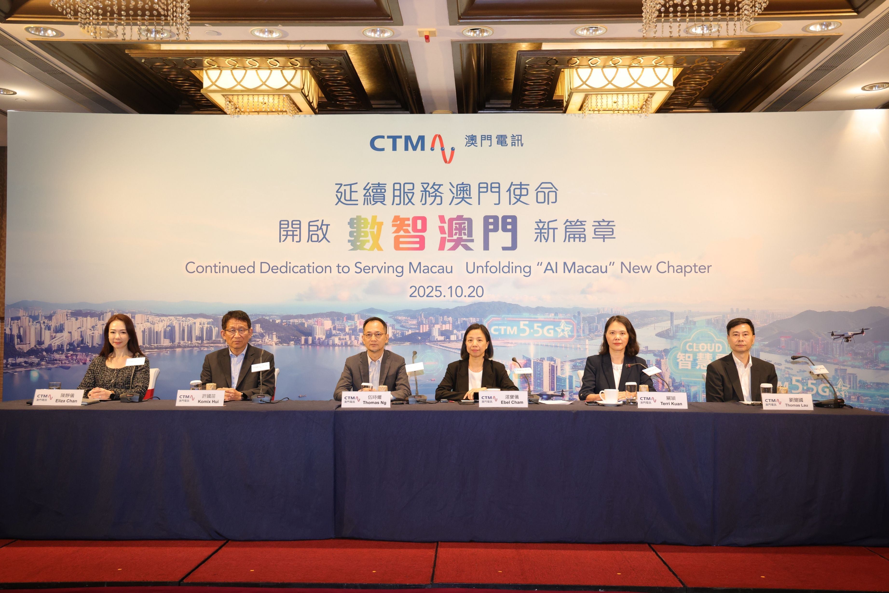 今日(20日)下午,澳門電訊舉行「延續服務澳門使命 開啟數智澳門新願景」新聞發佈會,該公司執行委員會成員包括商務副總裁湛寶儀、網絡服務副總裁伍時耀、財務副總裁關頴、資訊科技副總裁許國苗、客戶服務副總裁劉健國、企業傳訊總監兼執行委員會秘書陳靜儀列席,介紹澳門電訊聚焦AI、大數據等應用發展規劃,開啟「數智澳門」新願景篇章。同時藉著10月20日澳門電訊44周年之際,宣佈一次性全方位通訊服務減免方案詳情。
