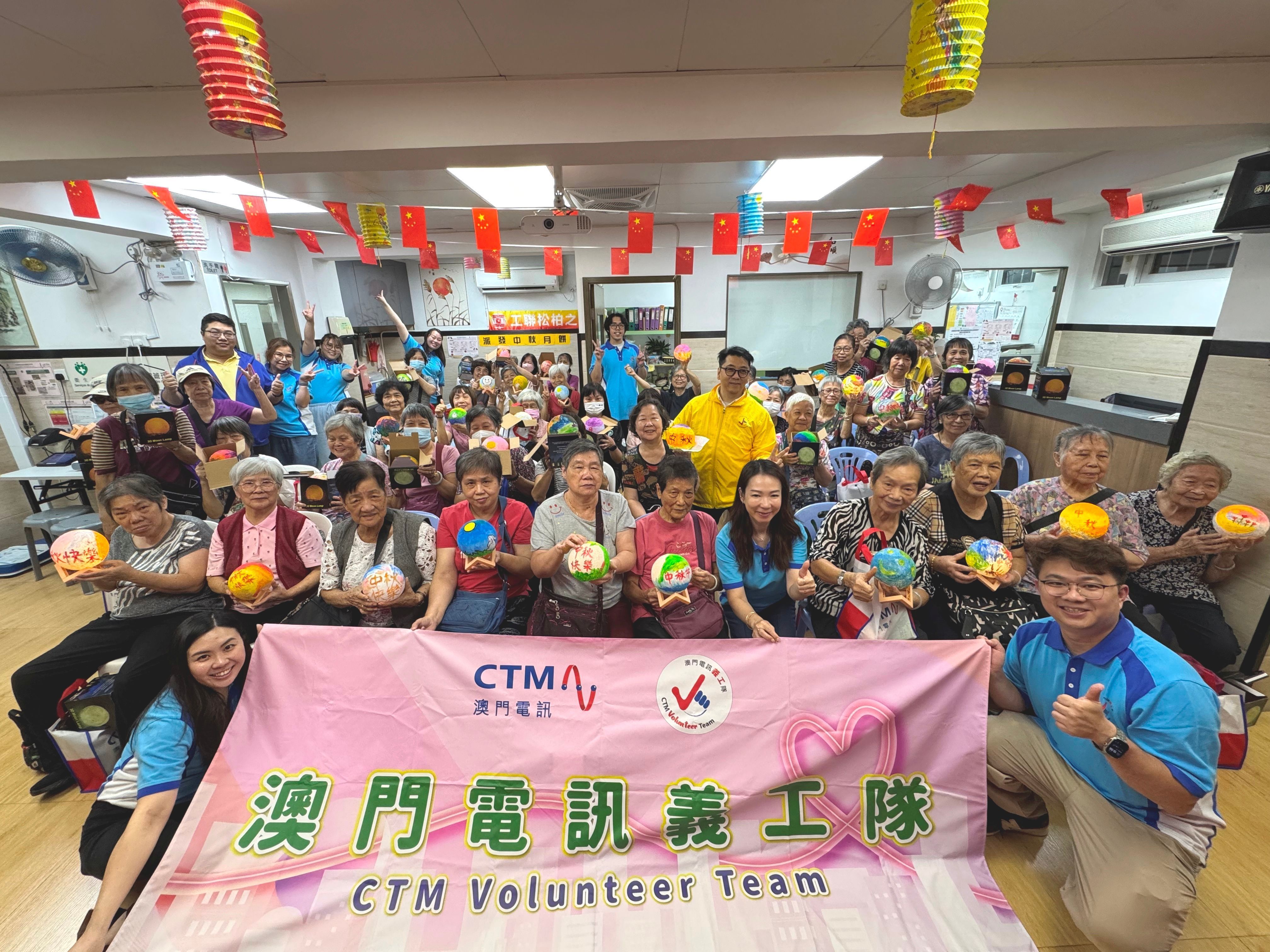 當日下午,澳門電訊義工隊前往工聯松柏之家,與近70名老友記一同親切互動,期間義工隊精心準備了DIY手繪月球小夜燈,並與老友記一齊「點綴月光」,老友記紛紛施展渾身解數,為月球添上「玉兔」、「桂花」及「嫦娥」等節日元素,沉浸在濃濃的中秋佳節氛圍中。