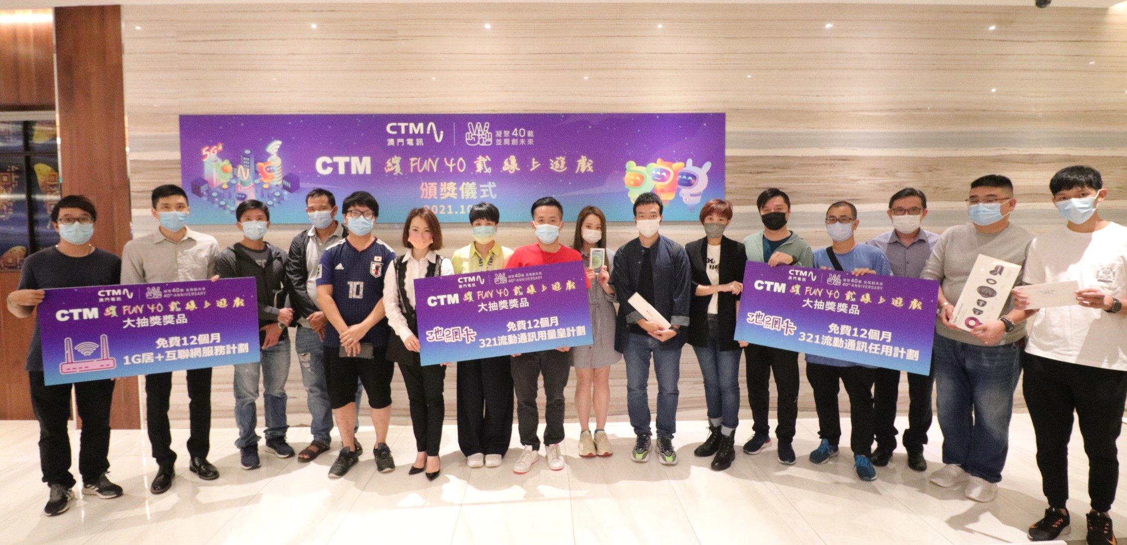 「CTM繽Fun 40載」線上遊戲由9月1日至9月30日期間展開,受到客戶的熱烈歡迎,累計超過1萬6千名客戶參與遊戲,合共參與遊戲次數更超過120萬次,遊戲送出共57份豐富的大抽獎禮物,包括升級版小牛電動車、智能手機、電子產品、澳門電訊一年流動通訊或一年光纖服務等。於10月29日下午,澳門電訊舉辦「CTM 繽 Fun 40 載」線上遊戲頒獎儀式,為配合防疫需要,澳門電訊邀請了部分得獎者出席頒獎儀式,並由澳門電訊管理層為得獎者頒發各項獎品。