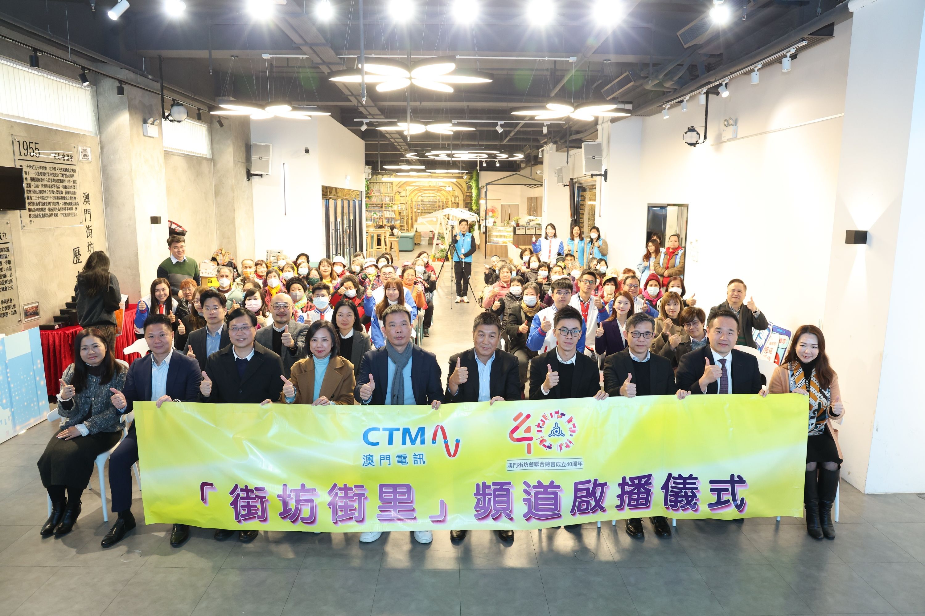 澳門電訊 x 街總「街坊街里」頻道啟播儀式今日(26日),假街坊總會大樓地下迎聚廊舉行,街坊總會理事長陳家良、副理事長程順明、副理事長兼立法會議員梁鴻細、副理事長兼立法會議員顏奕恆、澳門電訊行政總裁潘福禧、商務副總裁湛寶儀等擔任主禮嘉賓。