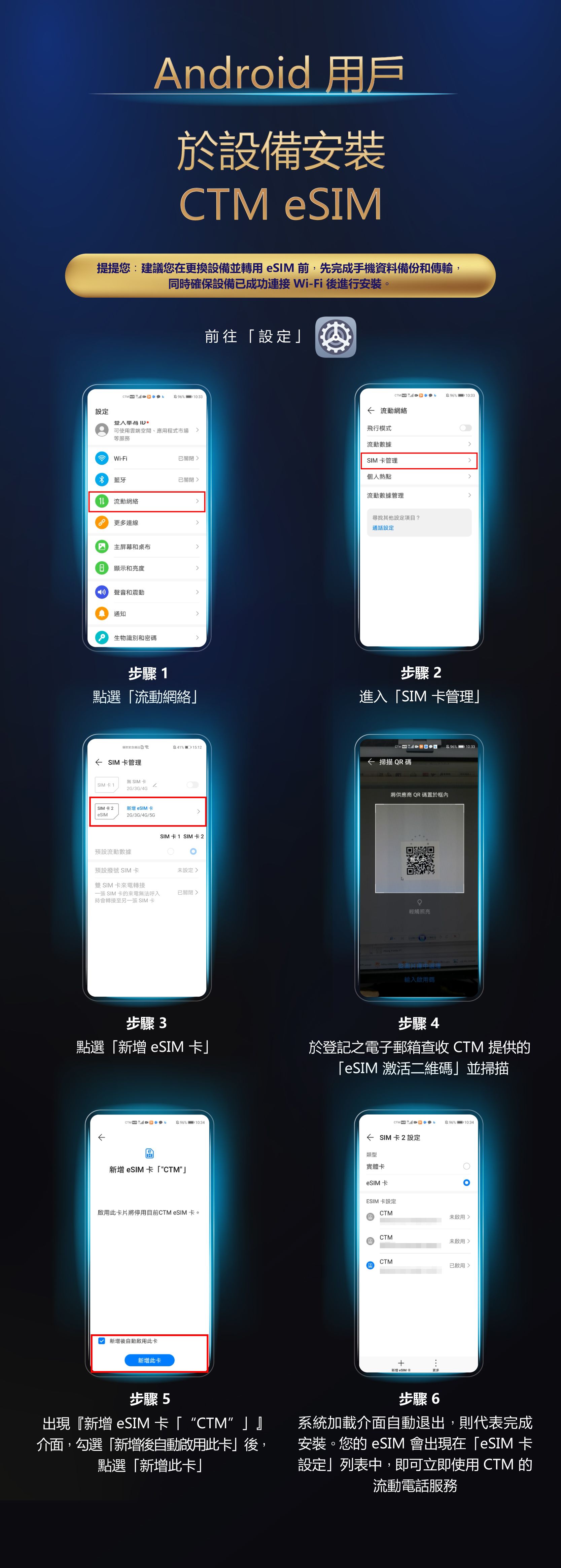於您的設備安裝 CTM eSIM - Android 用戶使用二維碼激活