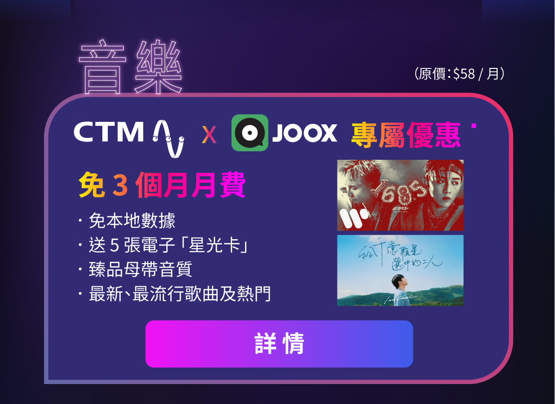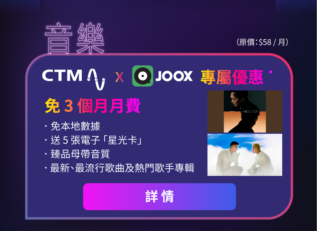 4. 優惠期後,如客戶繼續使用 JOOX 服務,另同時購買 JOOX「星光卡 + 會員套餐」商品,會員權益有效期則進行向上疊加。