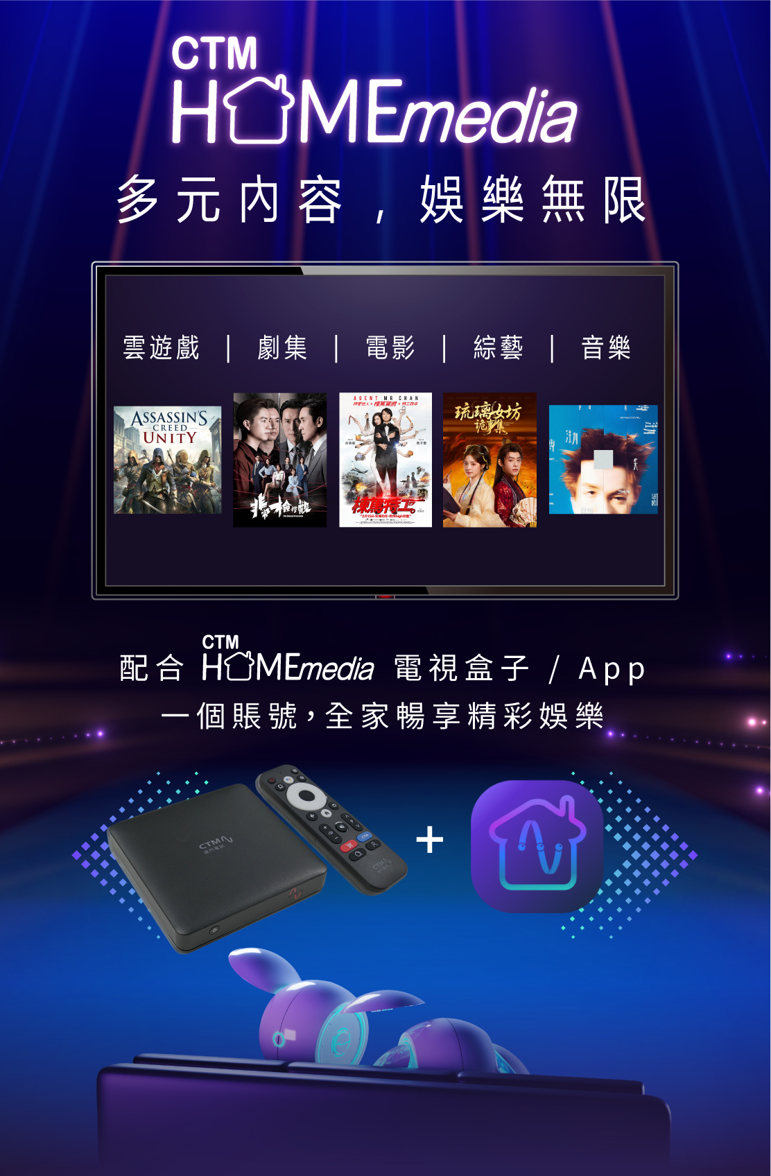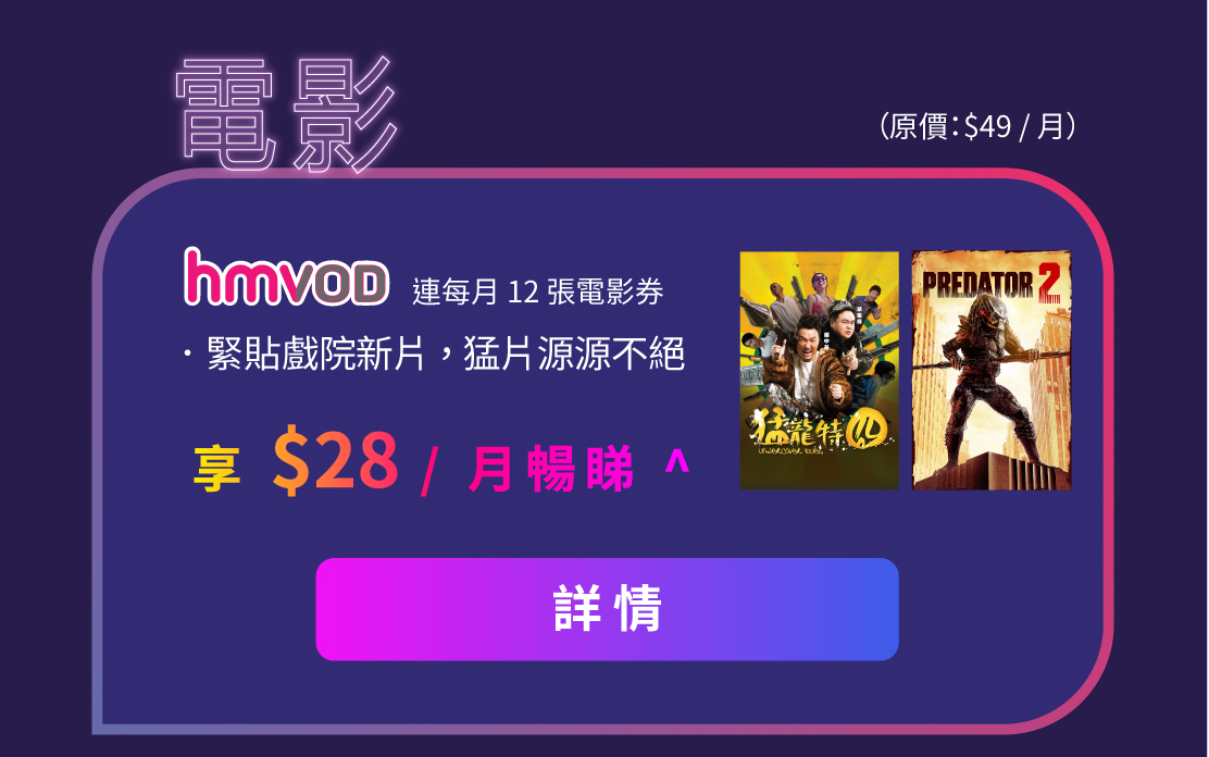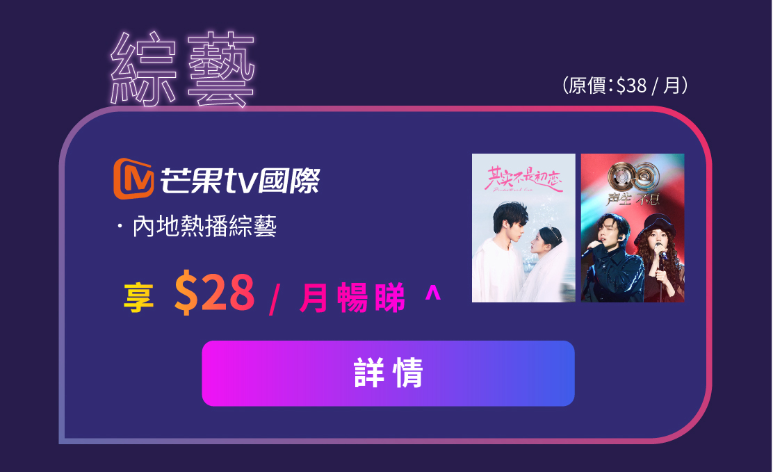 ^ 此優惠只適用於新申請 Home Media 娛樂服務 - 芒果 TV 國際至尊服務 / Blacknut 雲遊戲服務 / hmvod 服務之流動電話月費 / 光纖寬頻計劃客戶,且每個娛樂服務均以 $28 / 月計算。首 12 個月優惠期後,若客戶繼續使用相關服務,將以原優惠月費 (芒果 TV $38 / 月, Blacknut $60 / 月,hmvod $38 / 月) 於賬單內自動收取。