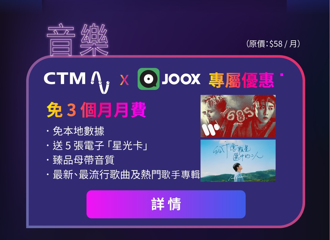 4. 優惠期後,如客戶繼續使用 JOOX 服務,另同時購買 JOOX「星光卡 + 會員套餐」商品,會員權益有效期則進行向上疊加。