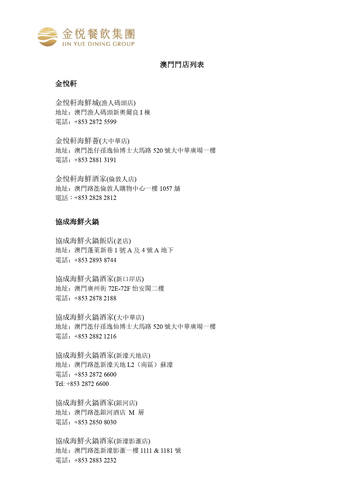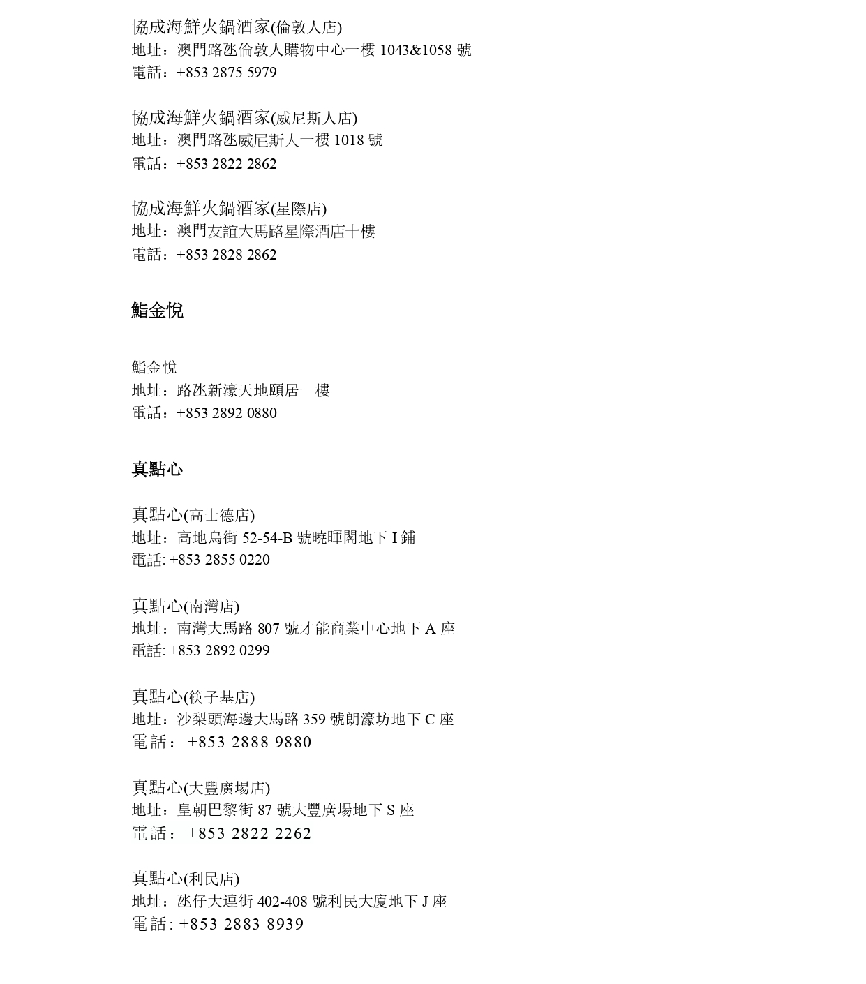 適用的餐廳地址