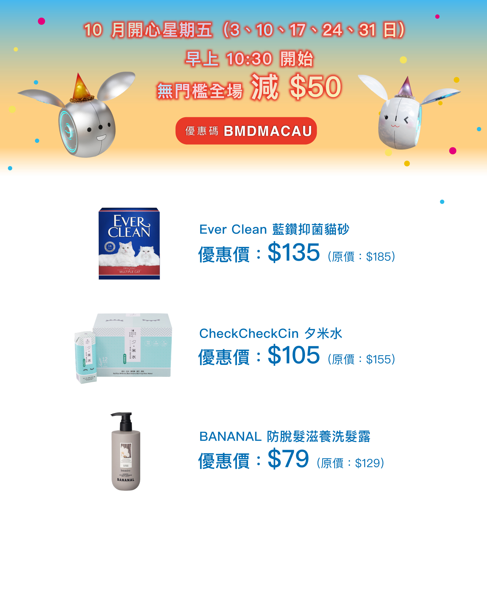 - 使用優惠碼【BMDMACAU】可享$50 優惠,每個帳戶只於每個優惠日子只可使用一次。