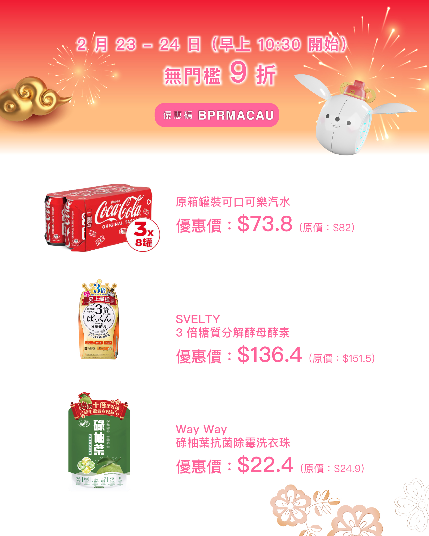 - 使用優惠碼【BPRMACAU】可享 9 折 優惠 ,最高折 $100 , 每個帳戶只於當月只可使用一次。
