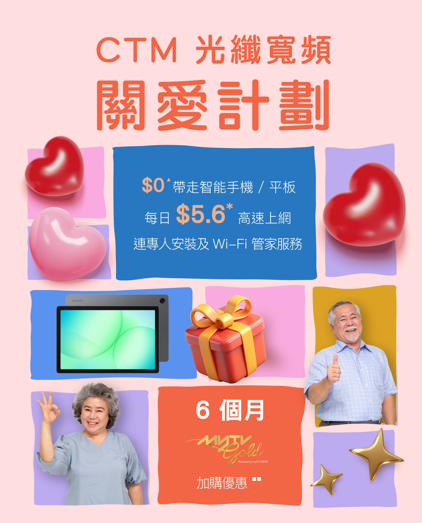▲ 此優惠只適用於 $168 / 600Mbps 關愛上台買機計劃,並只適用於指定機型。 ■ 此優惠只適用於新申請 Home Media 娛樂服務 – myTV Gold 服務之客戶。流動電話 / 居家光纖寬頻客戶可享優惠價 $120 購買 Home Media 電視盒子連 6 個月 Home Media 娛樂服務 – myTV Gold 服務(1 個裝置電視盒子版 / 智能電視版 + 2 個裝置 App / 網頁版)。優惠期後,若客戶繼續使用相關服務,將以優惠月費 $58 / 月(原價:$88 / 月)於賬單內自動收取;每個流動電話 / 居家光纖寬頻客戶只可享此優惠乙次。