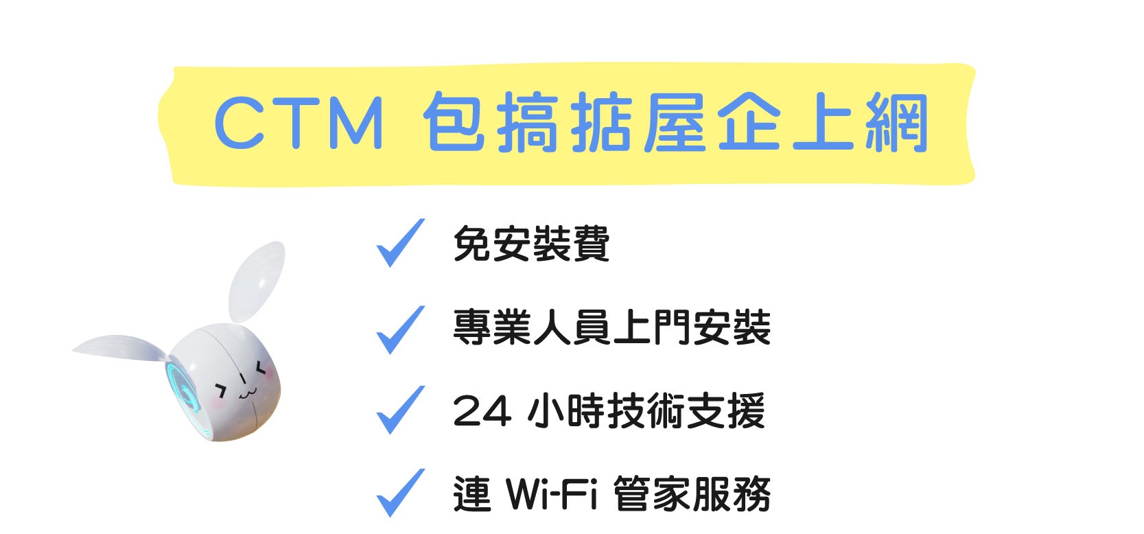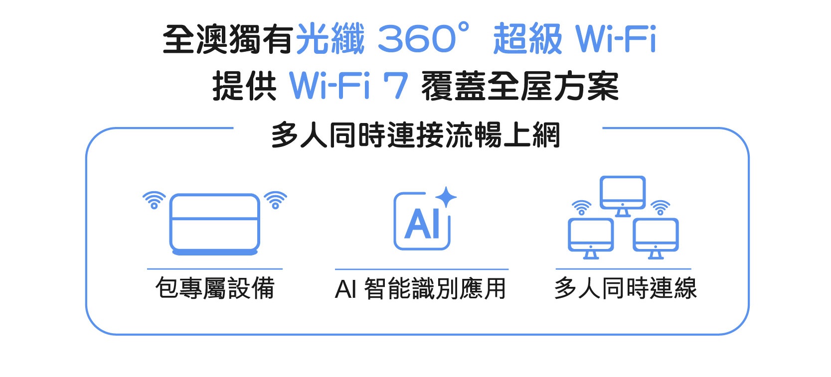 註: - 最新優惠月費及有效期日期至 2026 年 3 月 31 日。 - 優惠只適用於新申請 / 現有無產品合約束縛之客戶,客戶需簽署 24 個月合約。客戶若於申請日前 2 個月內有取消 / 降級服務紀錄,並重新申請上網,該客戶將不可獲得此優惠。申請光纖 360° 服務包括一個數據機及兩個路由器。如客戶因空間或使用需求需額外增加路由器,每個額外路由器之優惠月費為 $10(原價:$15 / 月)。 - 此優惠適用對象為經屋住戶,以及光纖寬頻安裝地址必須為經濟房屋方可享有指定優惠,每個客戶只可享優惠乙次。 - 以上優惠及最新價格如有更改,恕不另行通知。貨 / 贈品數量有限,售 / 送完即止。 - 所有價格以澳門幣計算。 - 以上優惠受相關之服務條款所約束。以 CTM 的可接受使用政策 (AUP) 為準。 |