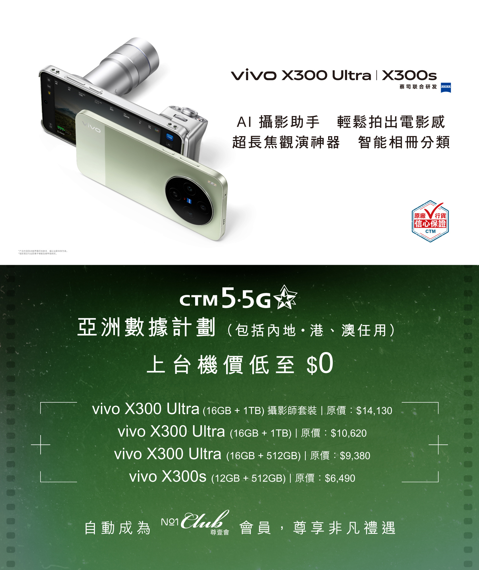 ~ 新申請或續約居家光纖寬頻 / 流動電話月費之客戶,可享 $38 / 月任選兩項 Home Media 娛樂服務(芒果 TV 國際至尊服務 / Blacknut 雲遊戲服務 / hmvod 服務)。優惠期至 2026 年 4 月 30 日。首 3 個月優惠期後,如客戶繼續使用相關服務,將以月費優惠組合 $48 / 月於賬單內自動收取。