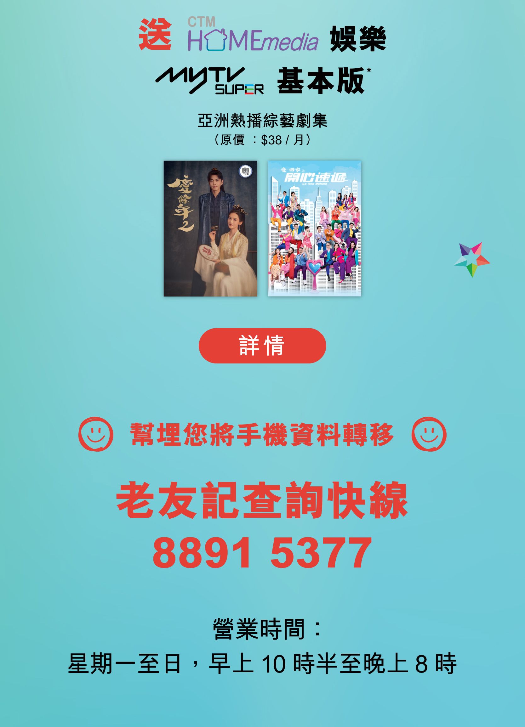 * 申請 5.5G (5G-A) 月費計劃,即送 myTV SUPER 服務(2 個裝置 App / 網頁版)至 2025 年 12 月 31 日,期後服務會自動停止。如欲繼續使用相關服務,客戶可透過 CTM Buddy App 享優惠月費申請服務。