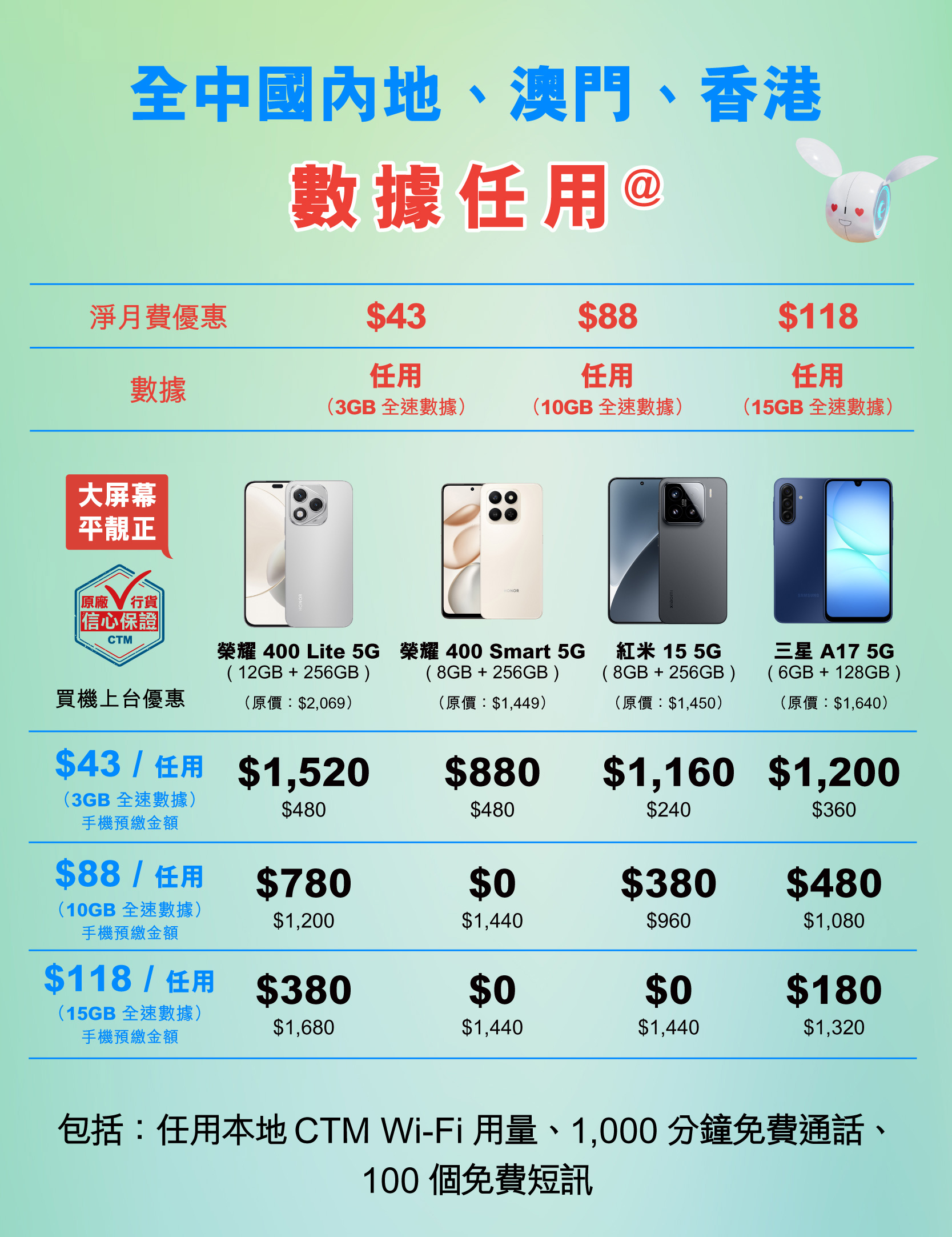 ▲ 此優惠只適用於新申請內地 / 香港電話號碼服務之客戶,首 12 個月優惠月費為 $18,贈送之香港 / 內地電話號碼服務優惠期為首 12 個月。優惠期後,如客戶繼續使用,月費將回復至原月費各 $28 收取。