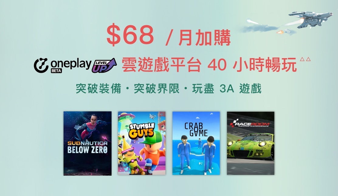 △△ OnePlay「雲遊戲服務」(原價:$80 / 30 小時)。使用「雲遊戲服務」時,客戶必須於網上遊戲商店(Steam、Epic、Ubisoft、Blizzard、EA、Microsoft 和 Fanatical)預先購買遊戲。「雲遊戲服務」可用的遊戲請參閱 OnePlay 雲遊戲平台服務網頁 (www.oneplay.in) 遊戲庫。