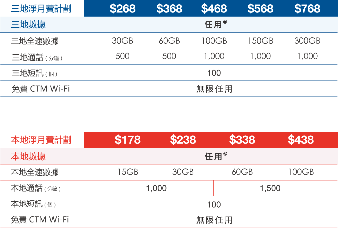 - 於海外使用漫遊數據服務時,客戶需額外繳付根據當地流動通訊網絡商之漫遊數據收費模式之費用。