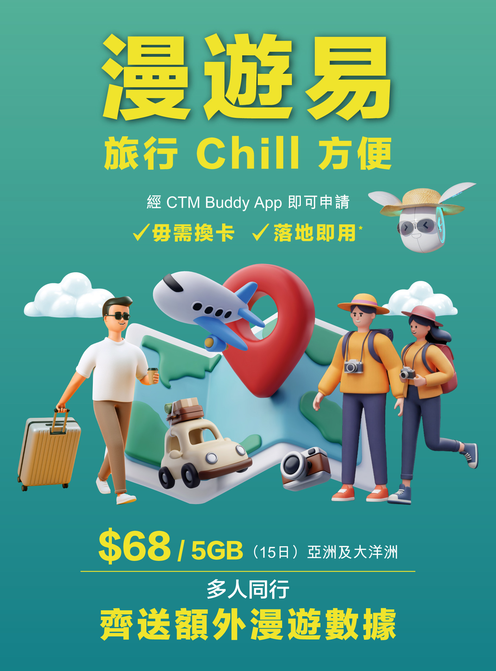 - 「漫遊數據自動按日收費組合」於開始使用漫遊數據時計費,每 24 小時將自動續期直至客戶停止使用漫遊數據或自行關閉相關服務。如需要,可於 CTM Buddy App 內關閉服務。