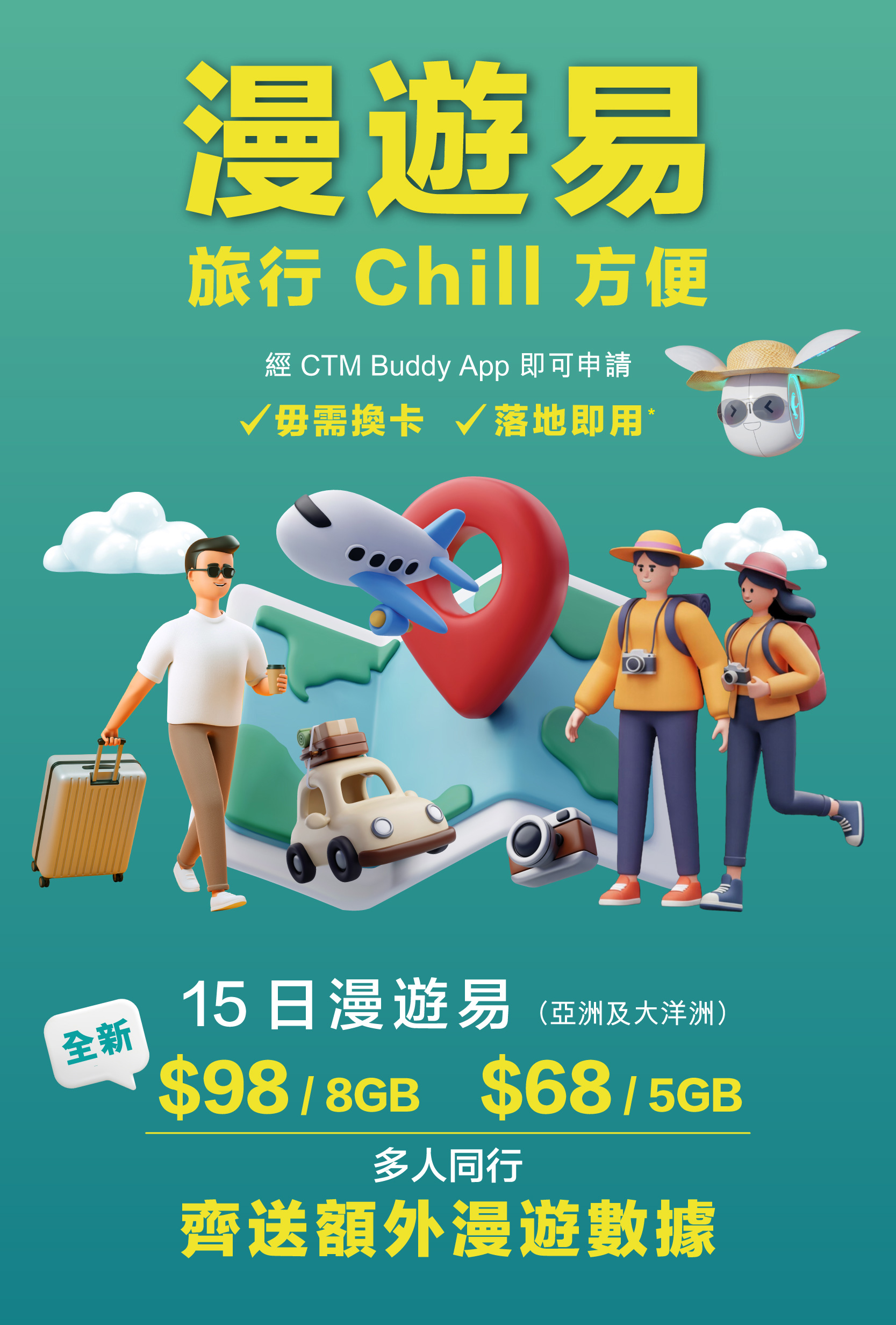 - 「漫遊數據自動按日收費組合」於開始使用漫遊數據時計費,每 24 小時將自動續期直至客戶停止使用漫遊數據或自行關閉相關服務。如需要,可於 CTM Buddy App 內關閉服務。